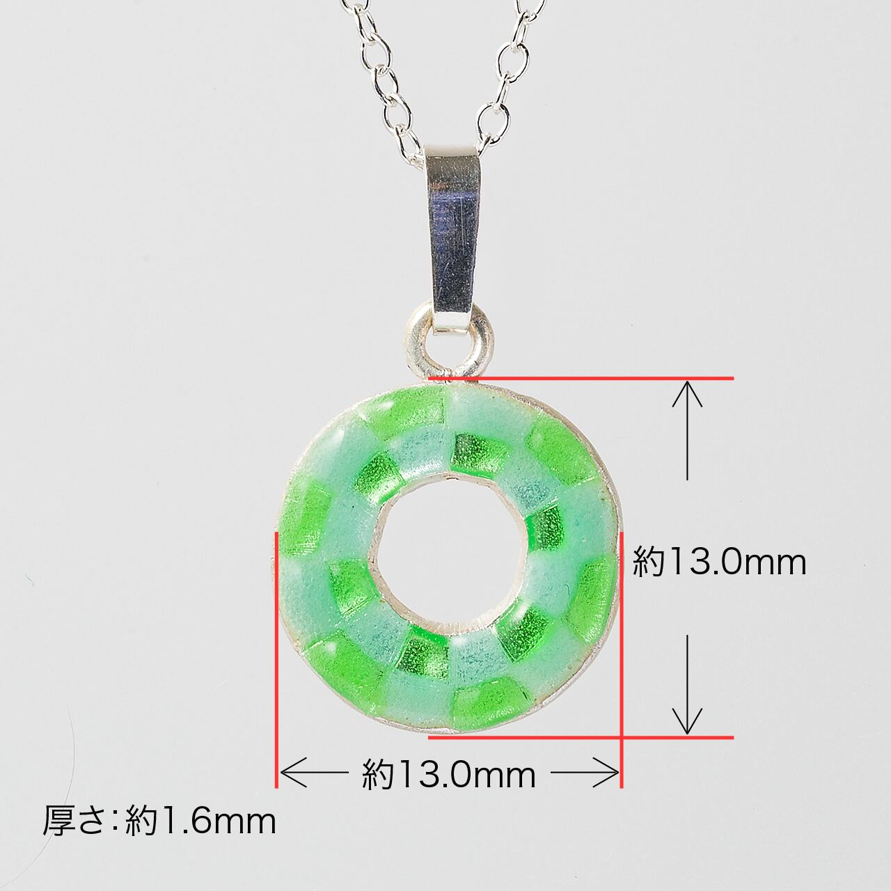 ペンダントサイズ:高さ約13.0mm x 幅約13.0mm x 厚さ約1.6mm